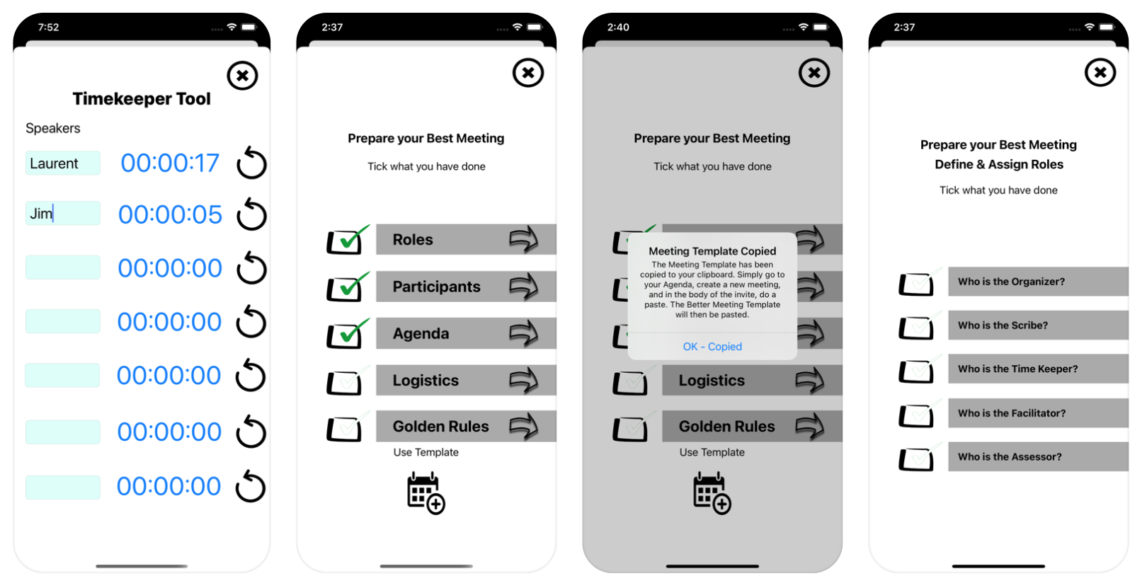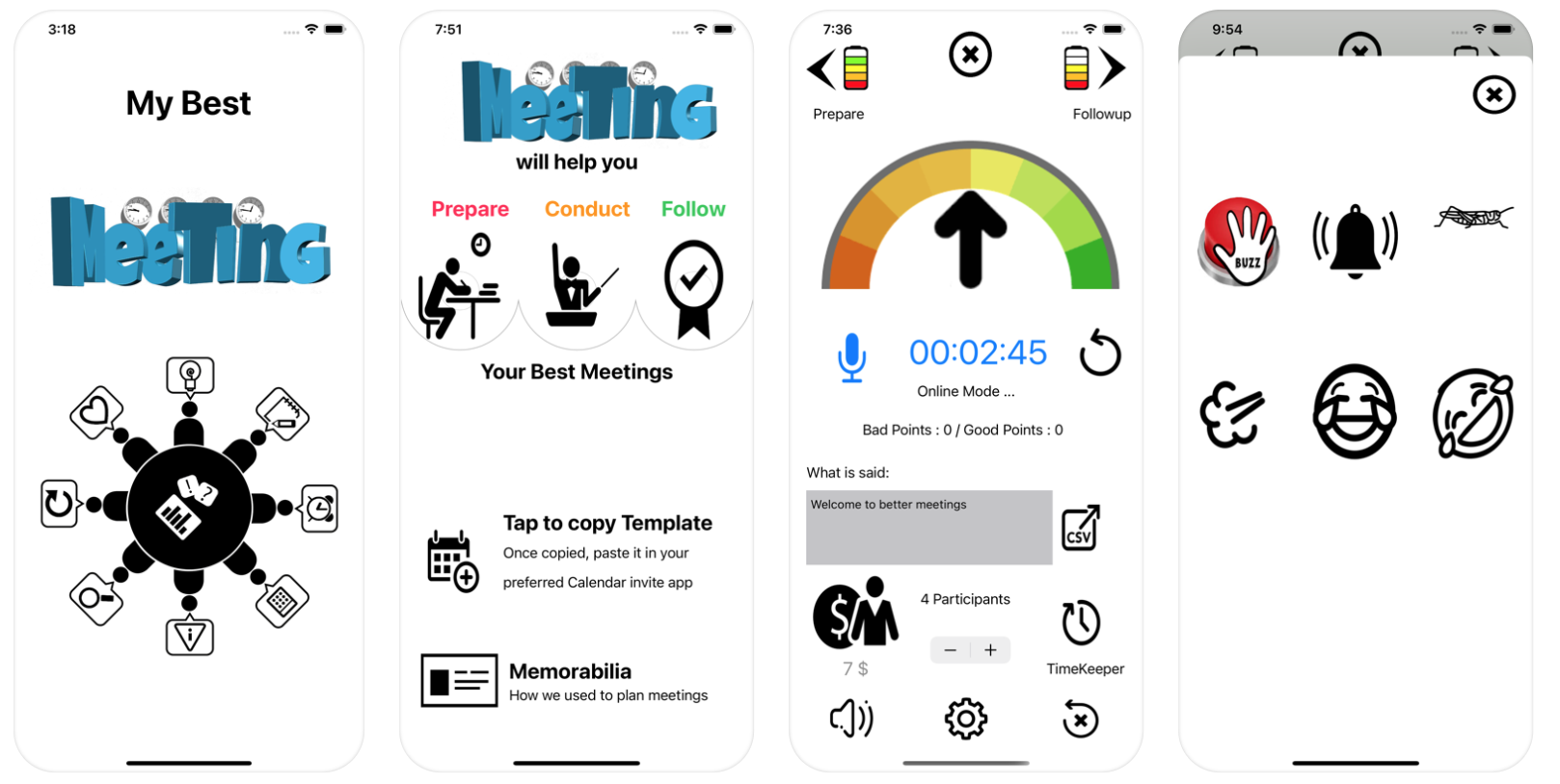 This app will help you Prepare, Conduct and Follow Up your meetings. You will become the most efficient meeting leader and you will regain your time and those of your colleagues!